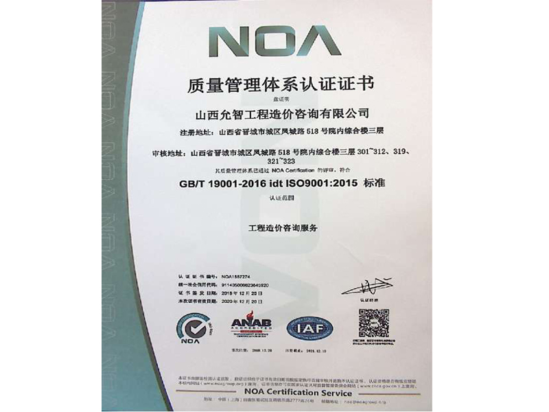 質量管理體系認證證書